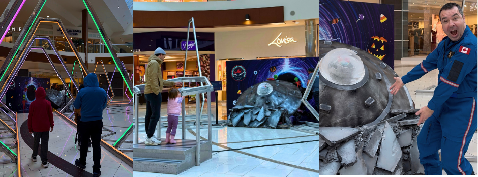 Designed by Calgary artists Liana Wheeldon (@LMW_Art) and Karlie Christie (@KChristieDesigns), with fabrication by Kevin Christie, the UFO is the show-stopping centerpiece of Heroes Beyond Earth. It appears to have crash-landed right in Centre Court, creating a perfect photo opportunity and capturing the playful, mysterious energy of Halloween.