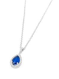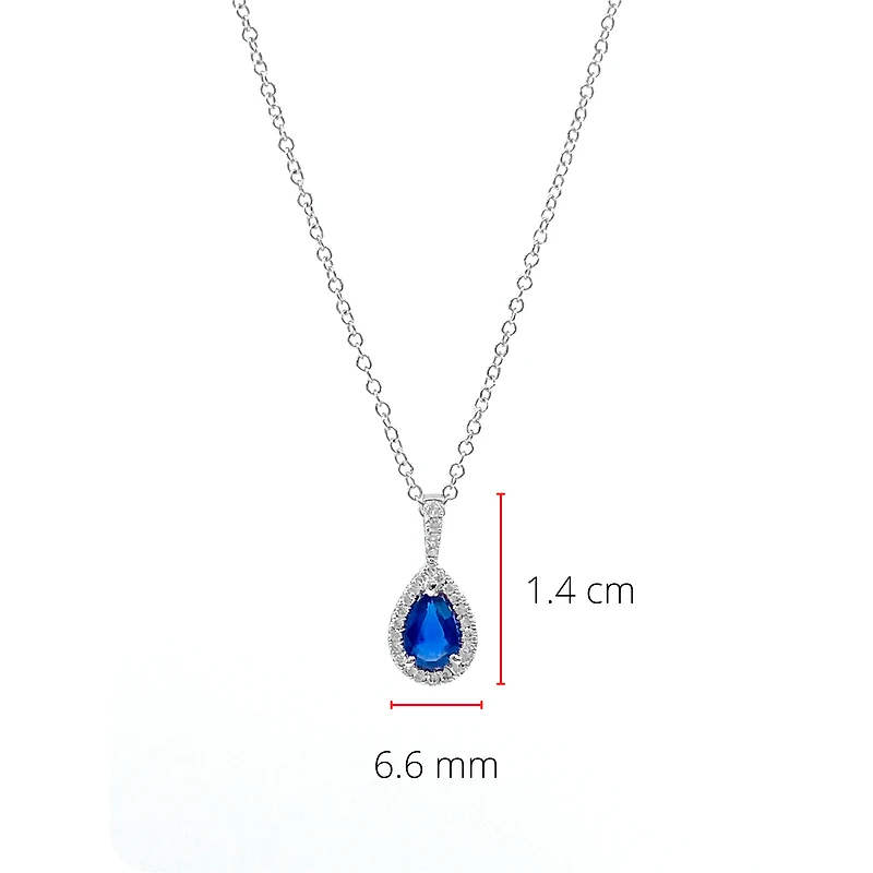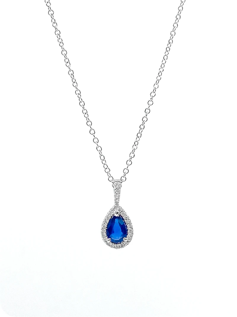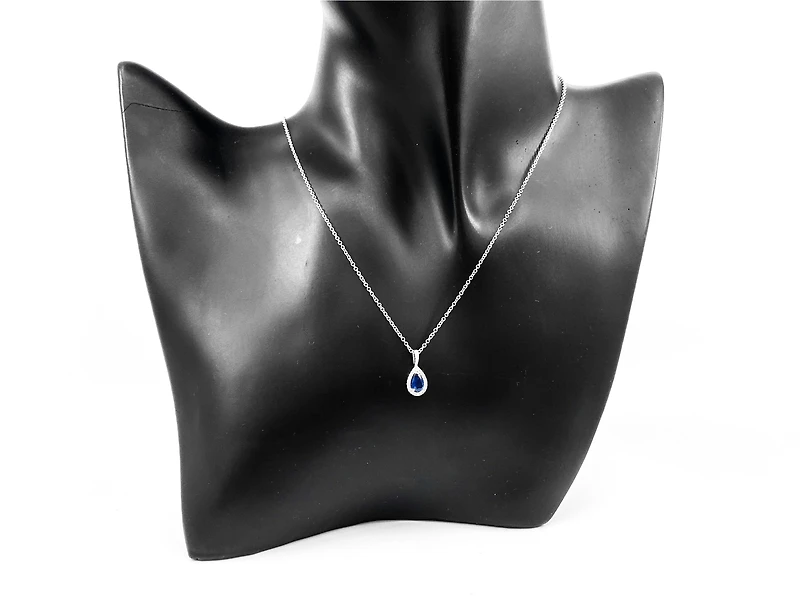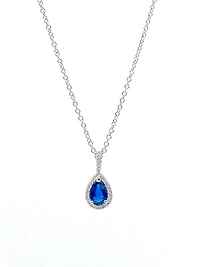 10K White Gold 0.60cttw Genuine Blue Sapphire and 0.09cttw Diamond Necklace, 18"