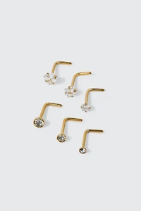Ardene 6-Pack Square & Round Stone Nose Studs in Gold