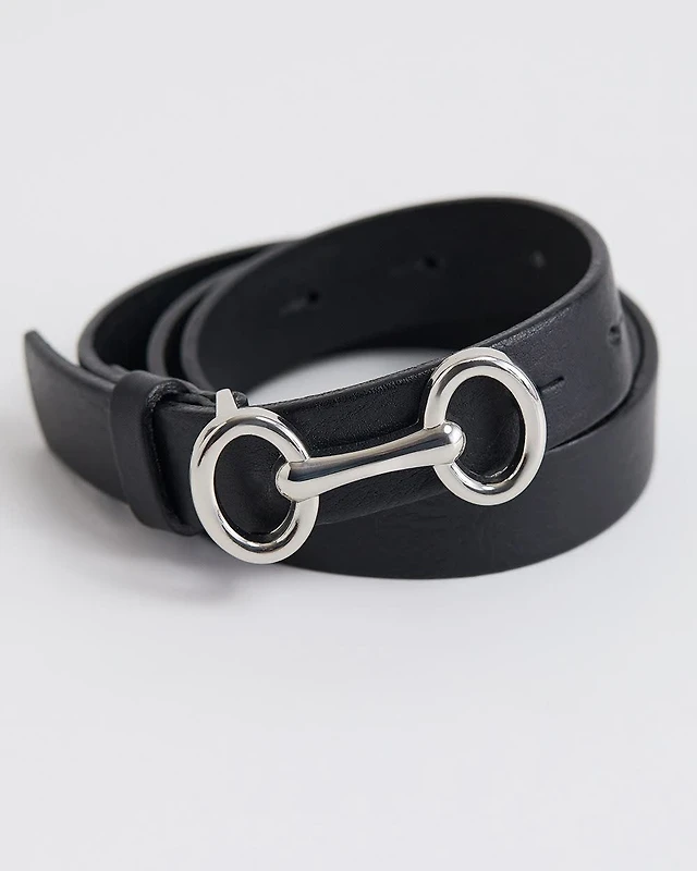 Ardene Silver Buckle Belt in Black | Size | Faux Leather