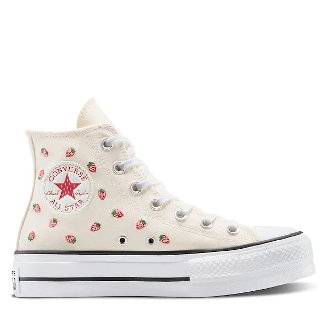 Converse Women's Chuck Taylor All-Star Hi-Lift Strawberry Sneakers in White Misc, Size 8.5, Canvas