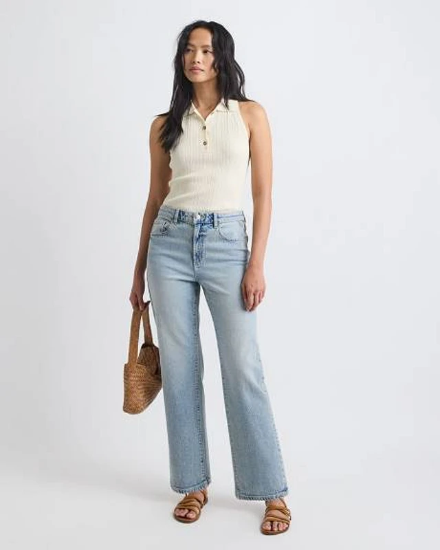 Medium-Wash High-Waisted Wide-Leg Jeans