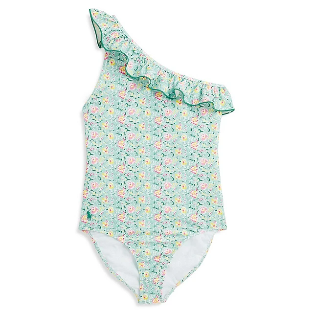 Girl's Floral One-Shoulder One-Piece Swimsuit