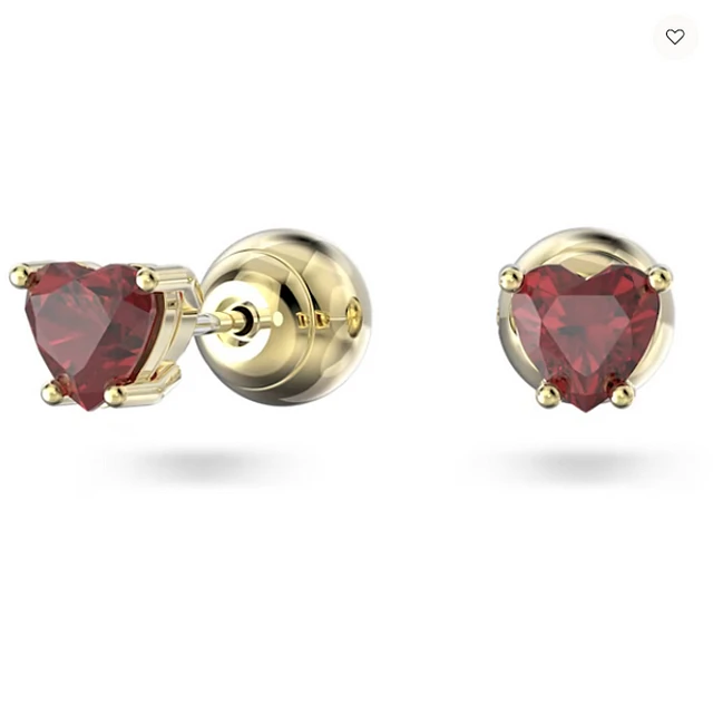 Swarovski Stilla Stud Earrings Heart, Red, Gold-tone Plated - 5639133