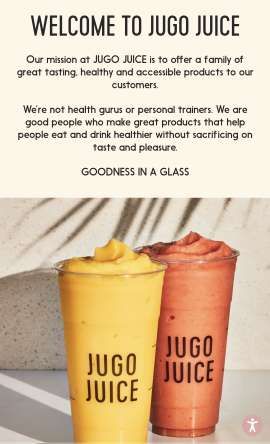 At Jugo Juice, we believe that you get out what you put in. We only put in premium fruit, fresh veggies, unsweetened juices, and whole-food benefits. It’s not easy finding great tasting, convenient and healthy options on the go.