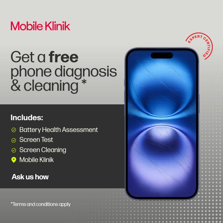 2025-10-01 - 2025-10-31Get a free phone check-up in-store today (4). In less than 5 mins our experts will perform: battery health assessment, screen test & screen cleaning* conditions apply.