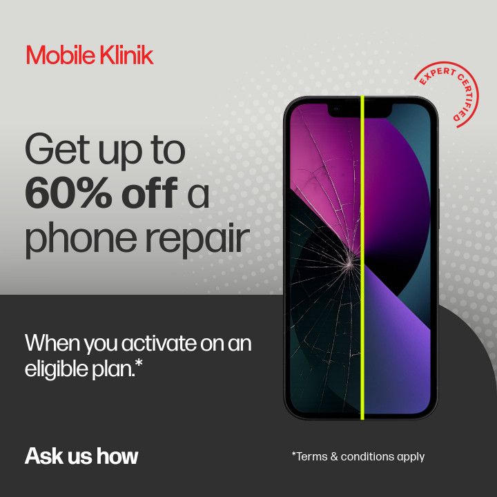 2025-10-01 - 2025-10-31Activate on a phone plan in-store, and get 60% off your phone repair* conditions apply